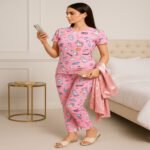 The high-quality digital printing ensures long-lasting colors that do not fade easily, giving the outfit a fresh and premium appearance even after multiple washes. The fabric feels incredibly smooth on the skin, making it perfect for all-night comfort and relaxed lounging at home.